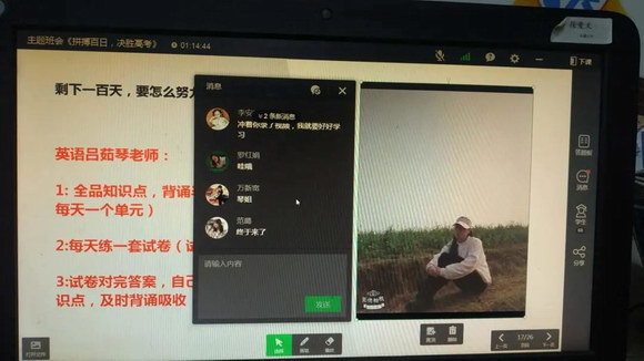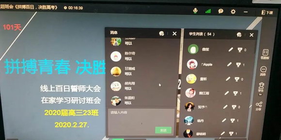 在線直播的過程中,學生可以像用微信一樣直接回復文字,老師也可以語音回復,這種互動相比視頻會議,避免了各種聲音嘈雜而且保證了播放的流暢的優點。在班會開始的5分鐘左右的時間里,學生就差不多都上線了,其播放不卡,畫面清晰。會后同學表示:“這是一次特殊的班會,在這種抗擊疫情的特殊時期,我們全班同學能夠以線上的形式,全員聚在一起,既興奮又覺得充滿了使命感。”
