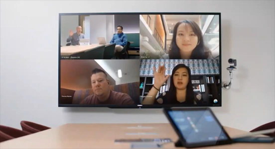 預(yù)定好心儀的會議室之后,Teams會議日程自動同步到會議室桌面觸控屏。與會者走進(jìn)會議室,點擊觸控屏上的“加入”按鈕,便可快速加入到視頻會議中,高效便捷,從此擺脫設(shè)備不會用、需要專人維護(hù)的困擾。