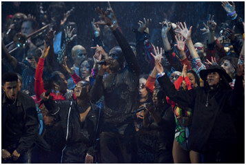 Williams說:“這一次,在水中表演不是問題,因為我們知道自己在做什么。因此,我們希望促成這一演出,TAWBOX希望把水幕效果做得更完美些。2018年第一次設計水幕效果的時候,只有Stormzy被淋濕,其他演員和伴唱歌手并沒有被水淋到。而這一次,TAWBO創意團隊的想法是:‘把更多人放在水幕下!’所以,我們讓手持森海塞爾話筒的Stormzy、Tiana和Teni,以及60位合唱團成員和60位舞蹈演員都站在水幕下。”