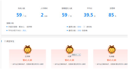 “教師能夠在學情反饋中看到每個學生完成作業詳細情況,對于學生完成作業的用時快慢,掌握知識的情況等數據情況能夠一目了然,很大的減輕了老師的工作任務。”作為英語老師的師老師同樣感受到作業報告功能對她教學的幫助。