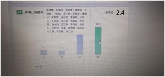 通過網上布置作業,學生網上提交,大大減輕了我們的負擔。張老師說:“剛開始我們布置作業,我們是讓學生在微信群里發送作業圖片,僅僅一一統計作業上交情況,每天都要最少半個小時時間,現在學生上交之后,直接能看到誰沒有上交;確實節省不少時間,而且網上布置作業也不復雜,在云課堂里面的答題卡里面可以直接導入準備好word文件,設置一下答案分數,幾分鐘就能搞定。等學生作業改完后各種分析總計直接出來每道題多少人對,到底是誰對一清二楚。”