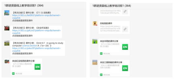 全縣參訓的5000余名教師被分流到11個臨時組建的微信群。每個群中,由希沃講師專門運營,并以直播教學、微信群交流答疑的方式進行培訓。參訓的教師們認真聽講、熱烈討論,課后及時進行實踐操作,按時完成每堂課的作業。尤其是很多年齡偏大的教師,對于這些現代化的教學手段不甚熟悉,但他們克服重重困難,好學好問,在希沃講師們的熱心幫助下,順利通過培訓考核。