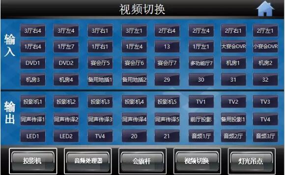 東方影都會議中心使用了81個IPX單元作為信息點來傳輸4K視頻,把大小宴會廳和多功能廳的音視頻系統靈活的應用與控制,設備集中安裝在核心機房。其他大、中、小會議室和董事長會進行獨立控制。該項目利用Aurora分布式矩陣4K信號傳輸無壓縮的技術,實現多個會議室的視頻傳輸互聯互通。運用了控制信號和視頻信號同步傳輸,減少現場布線的難度。各個會議室受控設備主要以RS232為主,主要控制矩陣、音頻處理器、投影機、投影幕、時序電源、升降架和燈光等設備,Aurora中控提供了IP控制方案,能在Pad和手機上以網頁方式登錄控制界面,讓控制更加便捷,避免了控制操作平臺數量的限制,并且在每個會議室以QXT-700做為固定控制主機,可以讓設備管理人員更好的控制會議設備。