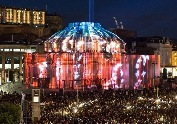 “我們用RZ31K作為這次演出的投影機。皇家阿爾伯特音樂廳最多用了20臺,隨后在亞瑟音樂大廳(Usher Hall)舉辦活動的時候用了10臺。根據目標建筑的表面積和光污染程度進行比較,倫敦和愛丁堡的是有區別的”詹姆斯解釋說。