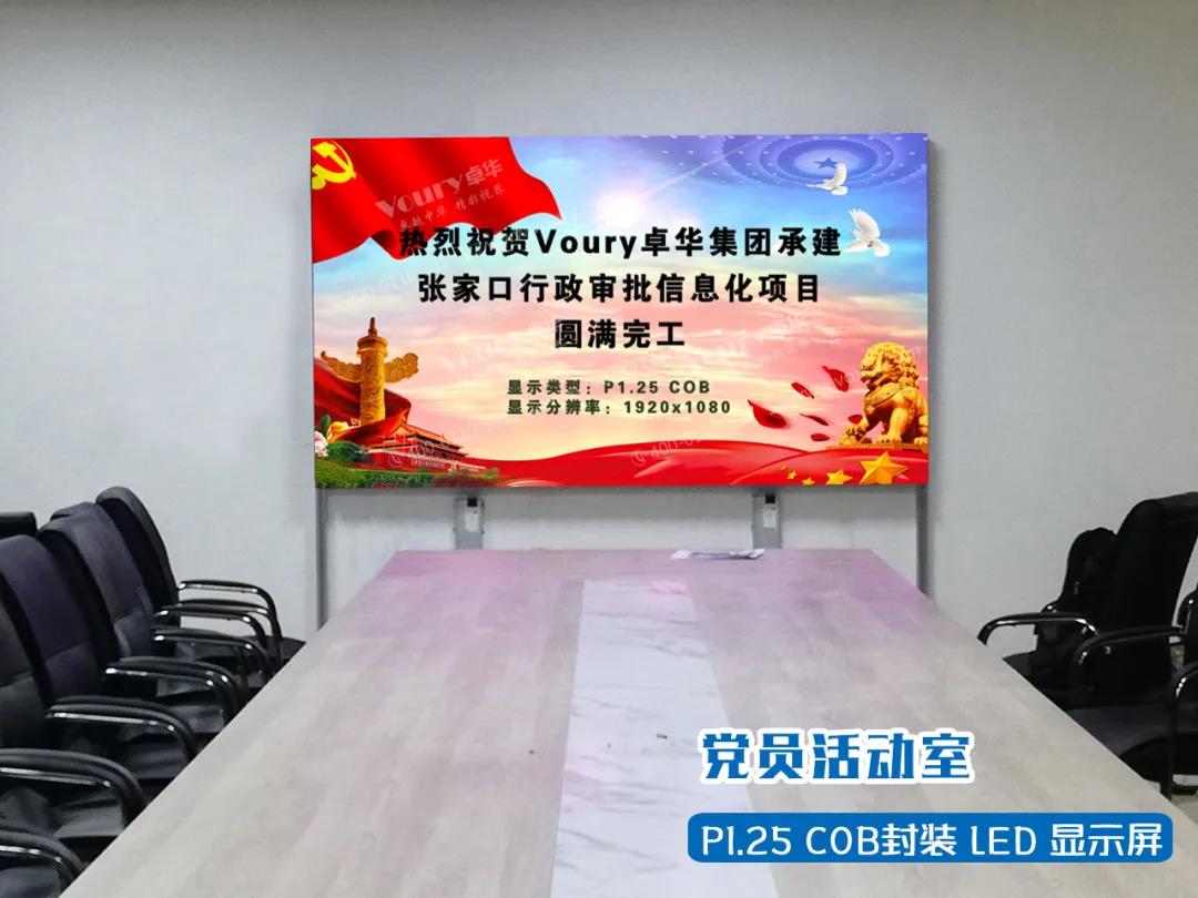 為進一步加強黨支部的陣地建設,提高基層黨支部工作的科學化和規范化水平。Voury卓華ZHVW-12C系列COB封裝LED顯示屏應用于張家口市行政審批局黨員活動室,以其無縫拼接、超高對比度、超高刷新率、豐富顯示色彩等調試效果,受到各位領導的一致好評,有效提升拼接屏幕的易用性,提升黨員使用體驗。