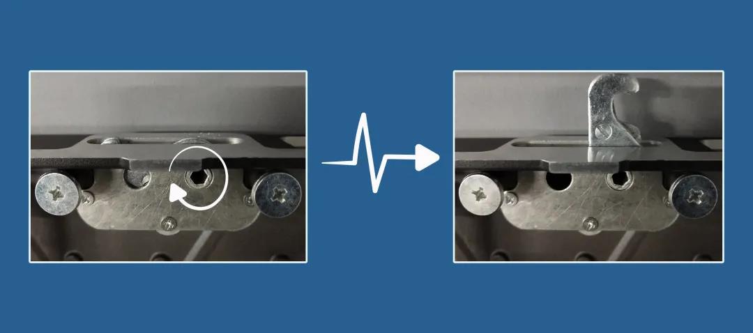 ▲ 旋轉(zhuǎn)內(nèi)六角螺母,轉(zhuǎn)出邊鎖卡舌連接箱體