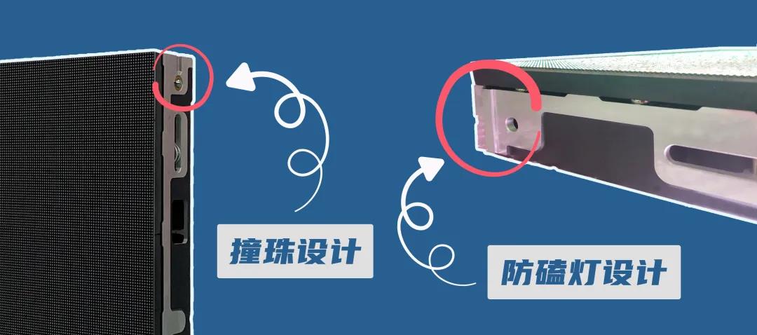 ▶ 撞珠設(shè)計(jì):箱體具有撞珠設(shè)計(jì),安裝時(shí)可通過聽取撞珠嵌入凹槽的聲音來確保箱體之間拼接到位,保證大屏整體的平整度。