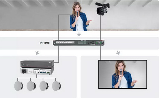 在許多專業視音頻安裝中,音頻質量與視頻性能同樣重要。IN1808 系列產品非常易于訪問,能靈活地處理音頻信號。來自麥克風或音樂播放器等信號源的音頻可嵌入到視頻輸出。存在于視頻輸出中的音頻可以被提取和路由,以進行額外的處理或放大。