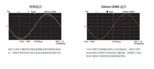 IN1808 IPCP SA 和 IN1808 IPCP MA 70 型號配備了音頻功率放大器,這些放大器均采用 Extron 獨有的 D 類放大器設計以及專利的 CDRS™ - D 類波紋抑制技術,能夠提供流暢、純凈的音頻波形,相比傳統 D 類放大器來說,其信號保真度有了明顯改善。
