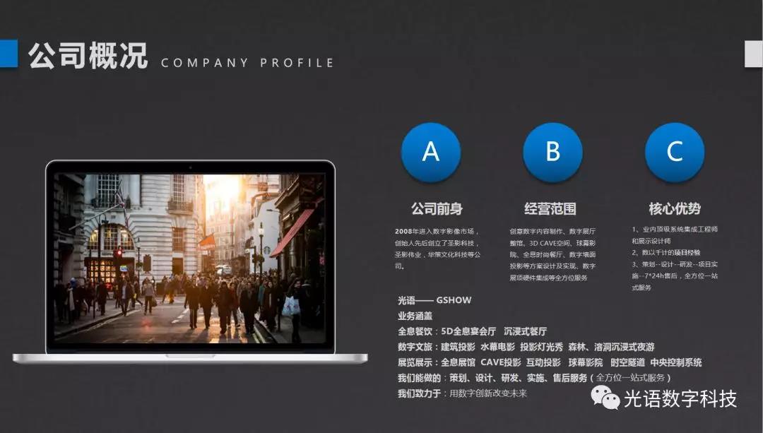 深圳光語數字深耕數字創意行業十余年,一直致力于數字多媒體展示服務和前沿多媒體展示技術探索與研究。善用數字影像技術打造大型文旅項目、沉浸式夜游、時光隧道、數字投影、數字交互技術、多媒體展項研發、5D全息宴會廳、全息網紅餐廳、全息展覽展示、企業數字展廳等。