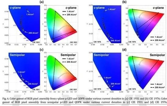 臺(tái)灣交通大學(xué)的郭浩中教授等人,與美國(guó)新創(chuàng)公司Saphlux、耶魯大學(xué)、廈門大學(xué)的研究人員合作,采用半極化(Semipolar)的Micro LED結(jié)合量子點(diǎn)熒光粉光阻(Quantum dot photoresist)的技術(shù),制作出高色穩(wěn)定的全彩Micro LED陣列,相關(guān)研究成果已被Photonics Research期刊接受,并即將發(fā)表。