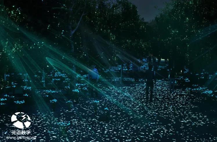 “沉浸式夜游是正真能打造令人難忘的夜間活動體驗的項目,它是將活動,內容與IP結合的藝術產物。主要手段有:互動觸感裝置,裸眼3D投影秀,體感發(fā)光裝置,全息水幕......光語數(shù)字通過對場地的研究,將更多豐富多彩的體驗內容與互動感受相結合,因地制宜地打造多維的沉浸式夜游模式。