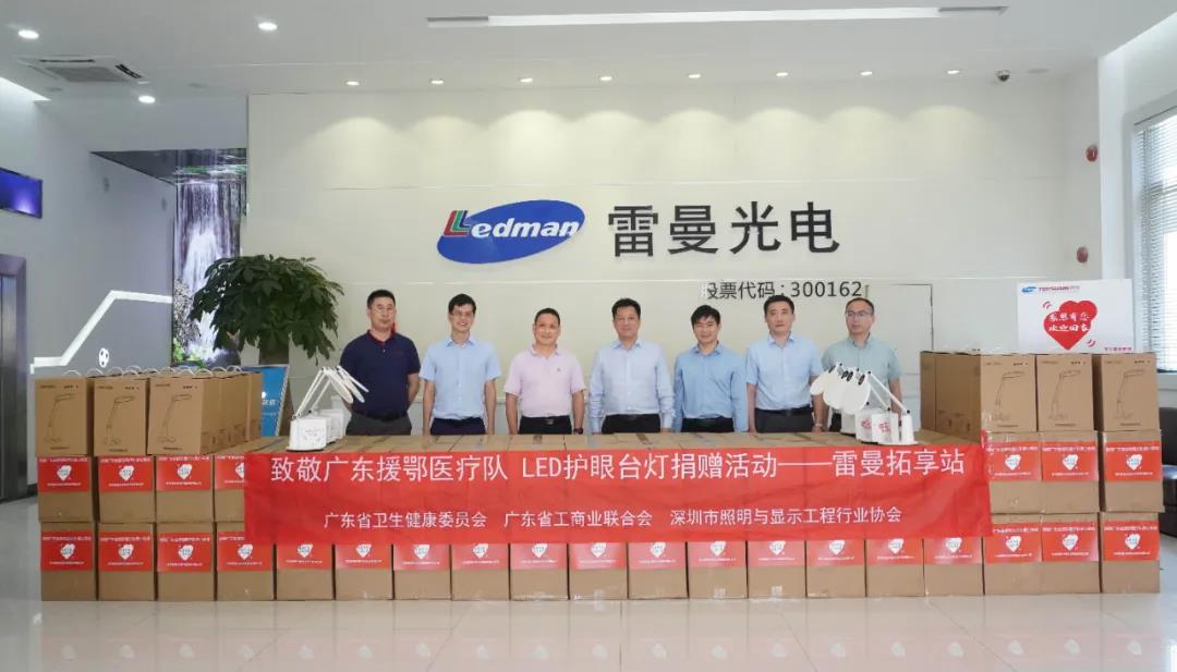 為感謝這些在突如其來的新冠疫情面前,義無反顧沖上一線,用自身的血肉之軀,筑起一道道生命防線的援鄂醫(yī)護(hù)人員,深圳市照明與顯示工程行業(yè)協(xié)會(huì)聯(lián)合廣東省衛(wèi)生健康委員會(huì)、廣東省工商聯(lián),開展 LED護(hù)眼臺(tái)燈捐贈(zèng)活動(dòng),由雷曼拓享(雷曼光電全資子公司)等六家企業(yè)、為廣東醫(yī)療隊(duì) 2495 名隊(duì)員每人贈(zèng)送一盞 LED 護(hù)眼臺(tái)燈。