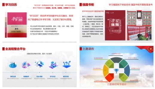 將思想傳播、理論實踐、現代科技相結合的馬院資源、教學、監控和展示平臺整體融入云端,包括馬院聯動、智能評估、數字展示、主題課程、強國書柜、學習日歷、智能網絡、全流程整合平臺等。