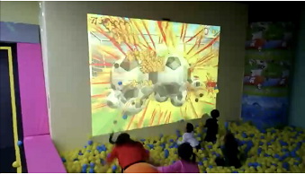 體育互動,如籃球,排球,射箭等,球或者箭砸擊在屏幕上實現互動。