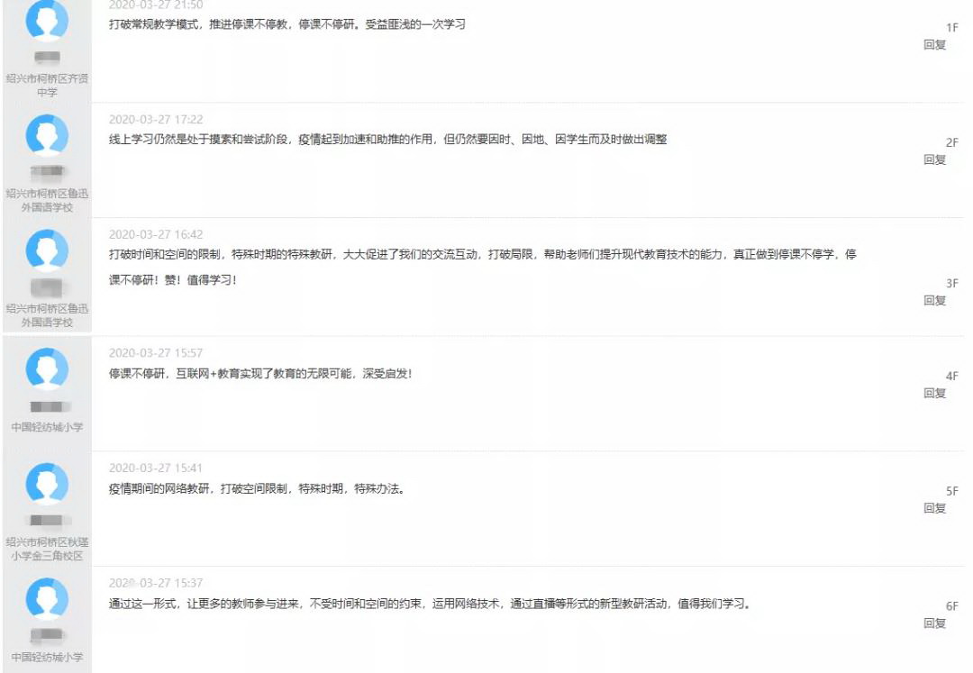 通過“天天智慧課堂平臺(tái)”,柯橋區(qū)積極開展局長(zhǎng)網(wǎng)上巡課活動(dòng),遵循“覆蓋全區(qū)教師、融合技術(shù)應(yīng)用”的原則,常態(tài)堅(jiān)持“年年觀摩、月月研討、周周評(píng)論、天天展示”。截至2020年3月底,“天天智慧課堂平臺(tái)”總訪問人次高達(dá)206萬(wàn),開展了數(shù)百次專題教研活動(dòng),累計(jì)超過6萬(wàn)條遠(yuǎn)程觀看評(píng)論。