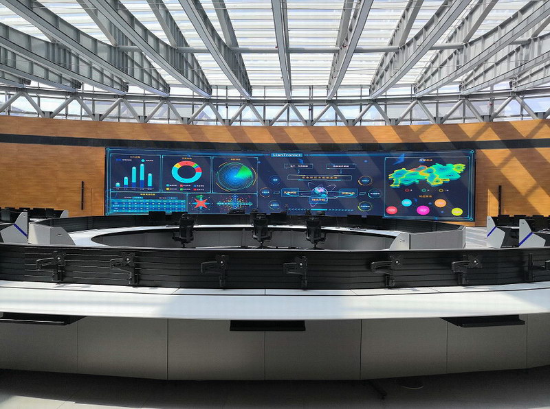 云計算數據中心陽光中心大廳LED大屏采用聯建光電VA系列小間距產品,面積達119㎡。該款產品憑借著高清、高灰度、高刷新、超廣角等卓越性能以及智能系統備份、靈活安裝方式、精準無縫拼接等特點,為全國城市管理、公共安全、醫療衛生、電力能源等行業應急指揮調度中心提供顯示支持,并獲得了行業內的良好口碑。此外,該屏系統支持多路信號輸入,可滿足多屏聯動傳播功能需求,能對復雜信息進行實時顯示,為指揮調度工作提供有效信息;穩定的播控系統,能夠準確、及時將各部門具體數據、視頻等信息提供給決策者,及時進行部門間溝通協作,助力云數據中心各項精細化業務開展。