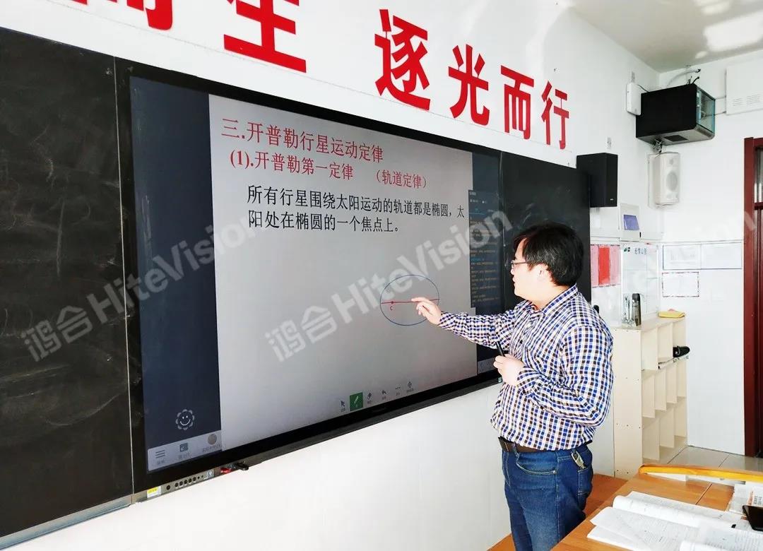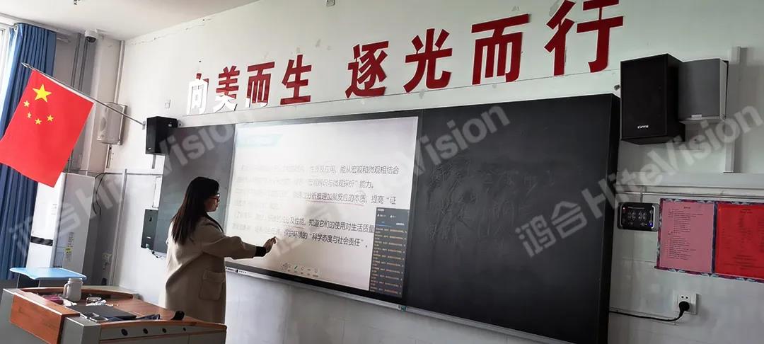 當鴻合智能交互黑板走進泰安實驗中學的課堂,以往講臺前復雜的設(shè)備、雜亂的布線都不見了,取而代之的是一體化的“大黑板”。