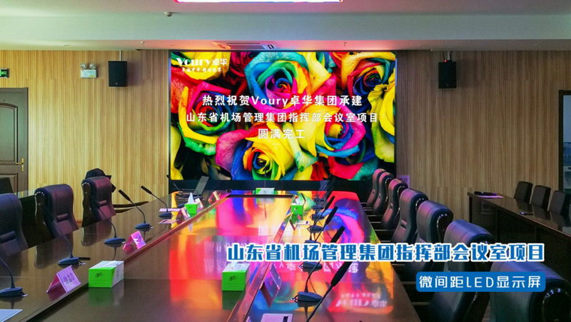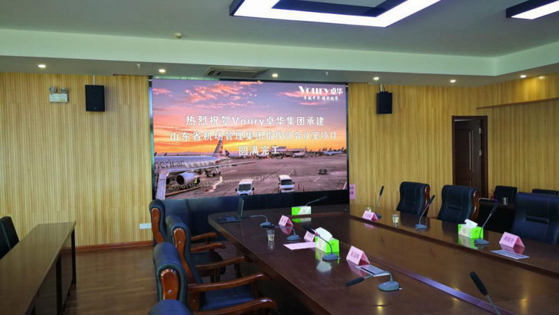 中國航空智慧與實力并存離不開機(jī)場指揮和全體運(yùn)營人員。近日,為提升機(jī)場建設(shè)工程的會議質(zhì)量和工作效率,滿足機(jī)場二期擴(kuò)建工程,在二樓大會議室配備了LED高清顯示屏,成為臨時指揮中心,待新工作區(qū)建成,LED高清顯示屏拆遷后繼續(xù)將繼續(xù)應(yīng)用于指揮中心。屏幕采用了P1.5小間距LED顯示屏,增強(qiáng)了各信息顯示的直觀性和操作性,滿足會議所需要的運(yùn)行模式。提高了用戶會議的便利性、準(zhǔn)確性及效率。同時Voury卓華LED顯示屏極致輕薄,重量輕,方便安裝搬運(yùn)等特點為日后大屏幕遷移增添了便利性。