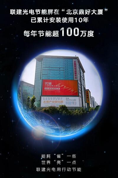 2010年4月初,北京中關村鼎好大廈1200平方米超大LED顯示屏由深圳市聯建光電股份有限公司打造,據悉該LED顯示屏寬48米,高25米,總像素超過200萬,可顯示280萬億色,成為當時全北京面積最大的戶外LED顯示屏。