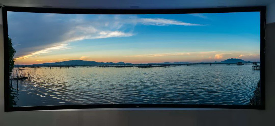 兩臺Grand Canyon系列DLP雙燈工程投影機,采用拼接融合的方式,打造弧形寬幕,一經點亮,便成為空間設計的視覺中心。