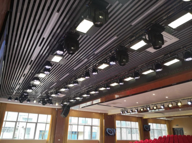 根據擴聲要求,在設備選型上主要以滿足綜合性多用途的產品。主擴聲設備采用8只線性陣列音箱,2只無源超低音箱,其舞臺搭配返聽音箱、補聲音箱、監聽音箱,合理裝掛或擺放在最佳位置上,既解決舞臺上聽音效果差的問題,又能保障臺前和聽眾區獲得最佳音質效果。整套音響系統聲場低音渾厚容量足、中音清晰明亮、高音細膩優美,聲場分布均勻,聲音還原自然真實,無論是開展各類會議或是舉辦校園文娛活動,皆能獲得出色的使用效果。