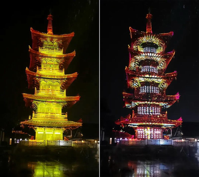 由13臺31,000流明的松下工程投影機PT-SRZ31KC打造的一場光影盛宴,讓拈花塔的整個塔身熠熠生輝!
