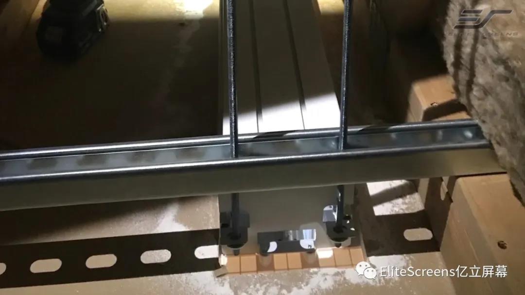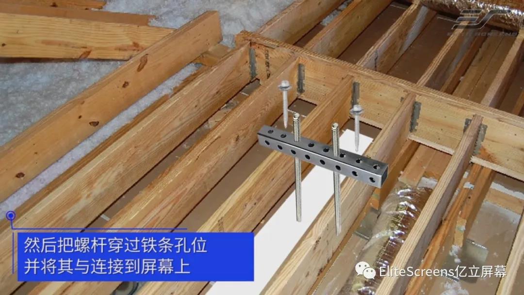 5.將螺絲穿過鐵桿的孔位,并固定在木梁上。