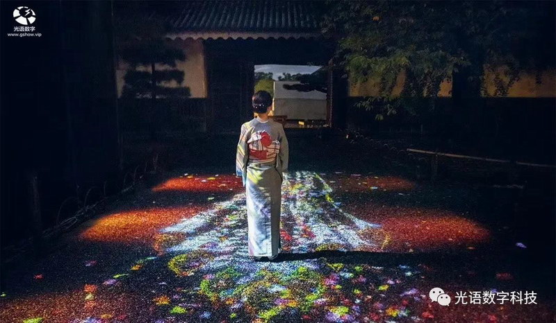 二、文旅夜游+投影互動裝置:項目理念融合科技和藝術,通過光影、色彩、聲音和互動影像來營造景區氛圍,讓游客不止于靜靜觀看,邀請游客參與、體驗、互動,觸發觀眾的感知與想象、為游樂增加深度,帶給游客加倍的感受。