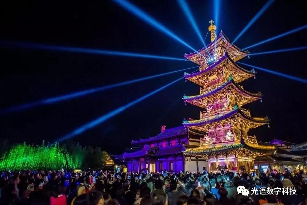 這種升級的夜游形式集影像、燈光、互動裝置、聲音、激光、水火、制景等各種表現手段,通過對場地規劃分析、人群的定位、以故事內容或植入IP形象、規劃游覽體驗路徑、把控夜間基礎照明與藝術照明之間的情景營造、互動體驗環節的搭配的方式,打造一個的極具體驗感的夜間文旅產品。