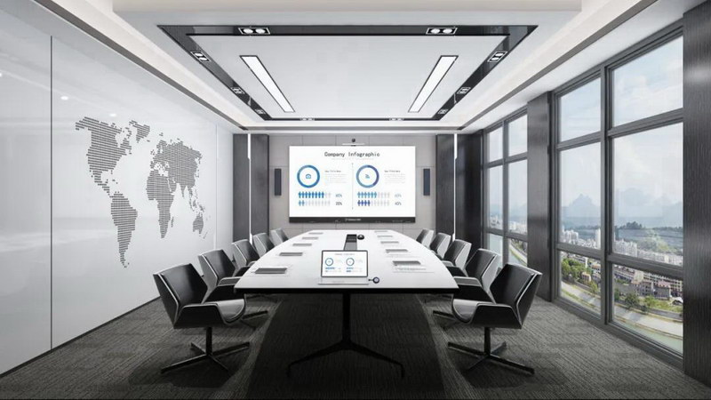 傳統多媒體會議室,顯示端有(LED、LCD大屏、投影機投影幕、輔助顯示電視等)、視頻會議、白板書寫、會議擴聲、中控系統、控制平板等,繁瑣束縛,受物理空間限制,團隊協作低效。