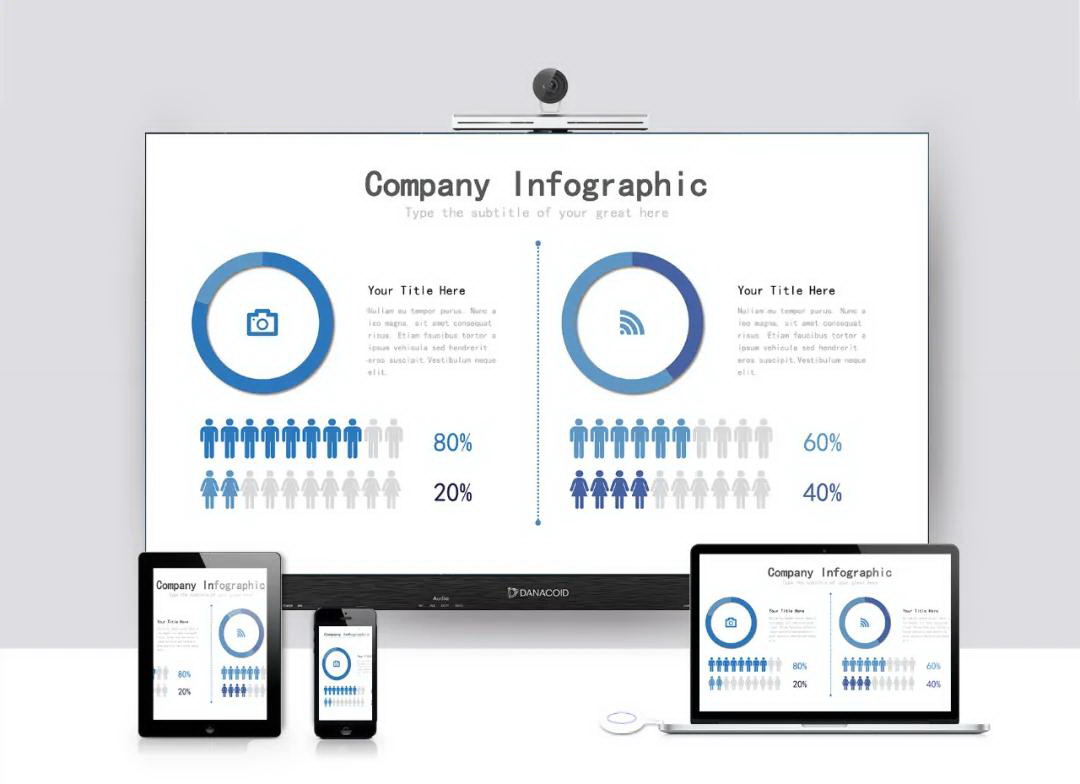 DANACOID LED 智慧會議屏采用小間距工藝封裝,亮度、色域、飽和度值都較高,單屏大于100英寸,無視覺拼縫,可以滿足多人觀看,是中大型會議室首選,公司將大量的研發投入系統控制端,將創新升級到一個新高度。