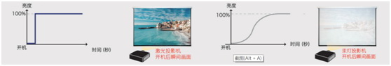 理光高端工程系列投影機PJ LU9000及PJ LU10000,開機即可體驗高清高亮畫面,避免了在場景使用中因開機延時而產生損耗。而且,關機后可直接拔電無需等待,既方便又安全。