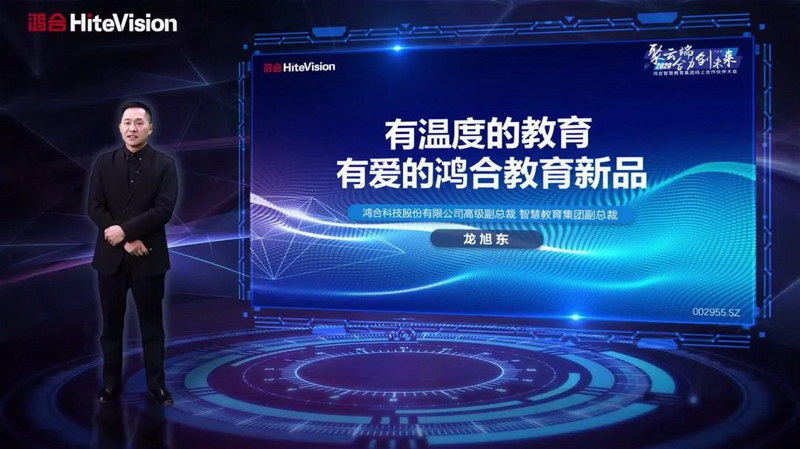 會(huì)議中場(chǎng),鴻合科技智慧教育集團(tuán)高級(jí)副總裁龍旭東詳解介紹了2020年鴻合教育新品,圍繞“專(zhuān)遞課堂”建設(shè)落地,鴻合推出了專(zhuān)為之設(shè)計(jì)的完整生態(tài)解決方案,內(nèi)嵌一系列鴻合先進(jìn)的軟硬件產(chǎn)品,比如具備優(yōu)秀交互顯示能力和技術(shù)創(chuàng)新突破的新款鴻合智慧黑板和交互平板,以及功能強(qiáng)大,簡(jiǎn)潔易用的互動(dòng)錄播設(shè)備。龍總表示:“信息化設(shè)備是老師的工具,而不能是老師的負(fù)擔(dān)!作為教育信息化的領(lǐng)導(dǎo)者,鴻合將一如既往的堅(jiān)持我們的使命,植根中國(guó)教育信息化,服務(wù)億萬(wàn)師生!”