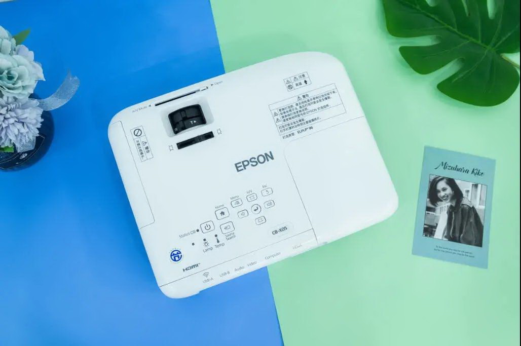 秉承愛普生一貫的產品設計風格,CB-X05整體機身設計簡約,線條銳利而不失圓潤,外觀設計上以清新的白色為主打色調,讓人倍感親切的同時不失商務氣息。機身尺寸為302 x 82 x 237 mm,重量方面僅有2.5KG,無論是吊裝還是放置在桌面上都不會有突兀的感覺,可以輕松融入現代辦公環境。