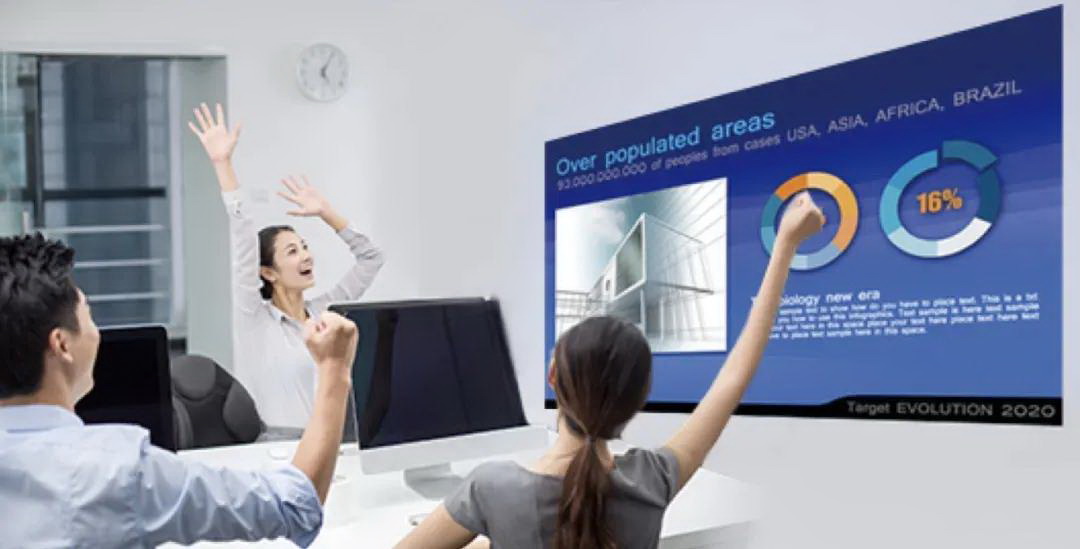 其實,看不清投影屏幕主要是因為在光線充足的會議室內,遮光效果不是很好,受環境光影響,如果投影儀亮度不足,畫面就會發白,呈現出來的就是一片灰蒙蒙。