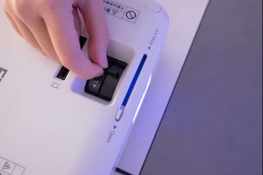 接入視頻信號后,投影機就會自動開啟,自動偵測適配信號并將其接入,無需手動調試。遇到不方正的投影畫面時,CB-X05支持上下左右±30°梯形校正,搭配機身上的水平梯形校正滑鈕,畫面調整一鍵搞定。