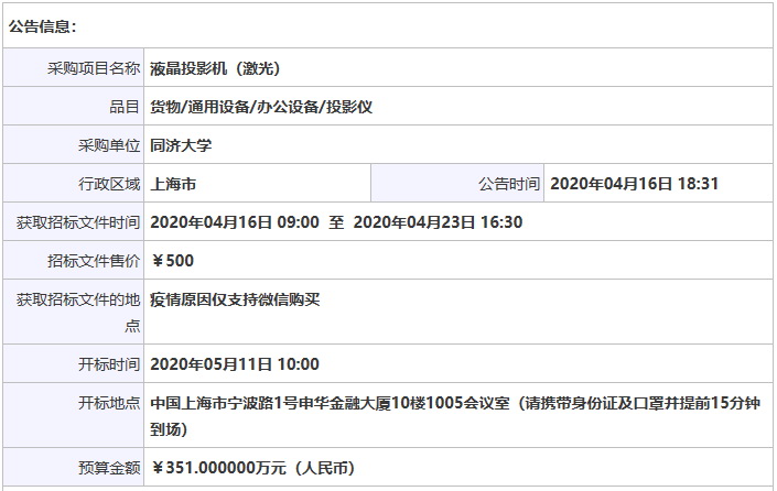 采購品目: 貨物/通用設備/辦公設備/投影儀