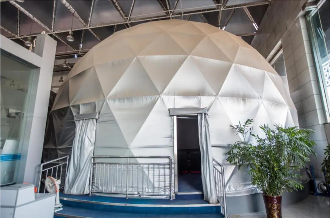展廳中的“球帶顯示方案”屏幕采用雙曲結構。觀影方式類似于IMAX巨幕電影,但是能提供比巨幕電影更佳的視覺包容感和沉浸體驗。