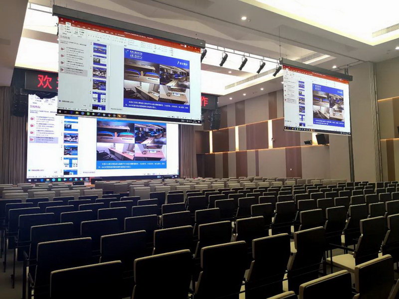 中國武漢的國電長源電力有限公司五樓報告廳使用 Christie D20WU-HS 投影機,定期向員工通報企業最新情況。2019 年 12 月啟用,用來舉辦專題報告會、業務啟動會、股東會議等,以及節日期間進行演出使用。