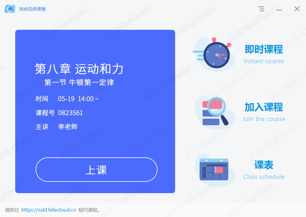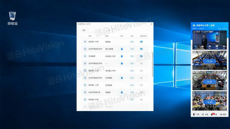 融合教育場景需求,搭配鴻合互動課堂軟件,可實(shí)現(xiàn)課前預(yù)約、一鍵開課、即時(shí)入課等功能。課前,主講教室老師可以通過即時(shí)課程一鍵開課;其他地區(qū)聽講教室可通過鴻合遠(yuǎn)程互動課堂管理云平臺查看教學(xué)計(jì)劃,進(jìn)行快速約課或輸入課程號兩種方式快速加入課堂,流程簡單,輕松與跨區(qū)域空間的學(xué)生“面對面” 開啟同步課堂。