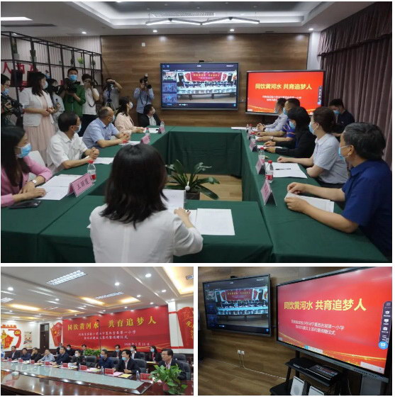5月20日下午5點20分,河南省實驗小學與寧夏西吉縣第一小學以“同飲黃河水,共育追夢人”為主題的云上座談會如期召開。會議上,兩校協同共建云上簽約暨捐贈儀式順利舉行。兩校將從硬件、軟件、師資培訓等方面與寧夏西吉縣第一小學進行全方位的共建。作為活動支持方,希沃通過交互智能錄播全程保障座談會順利展開。