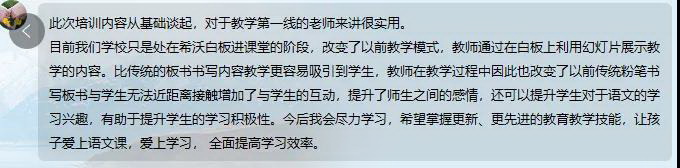 線上培訓(xùn)開展以來,老師們均積極踴躍參加學(xué)習(xí),不少老師表示本次培訓(xùn)有效加深了個(gè)人對于教學(xué)與信息化技術(shù)融合的理解。