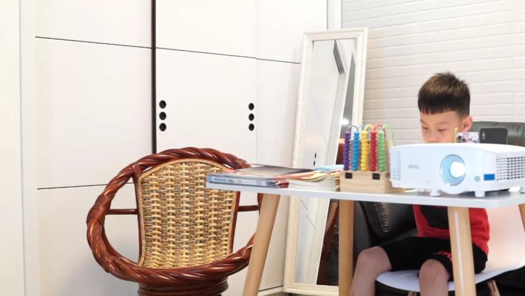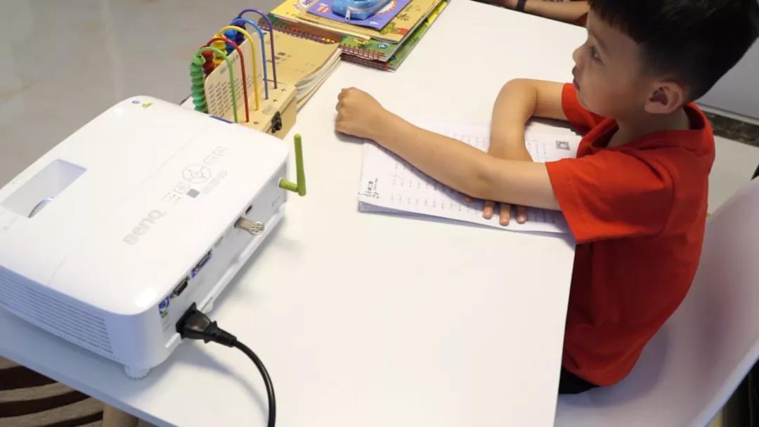 在把手機、平板電腦畫面投射到明基E520大屏幕之后,孩子接受在線教育猶如在教室一樣,他雙眼要在遠處“黑板”——投影機畫面,以及近處的書本間切換,眼睛不再長時間盯著近處的書本,更有利于眼睛健康。