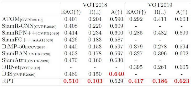 基于VOT2018/VOT2019數據集的算法評估結果