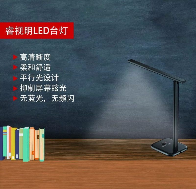 拓享睿視明護眼臺燈采用全球獨創的CPP高清光源專利技術,具有高清晰度、出光清澈、抑制屏幕眩光、精準控光、柔和護眼、無藍光、無頻閃等優點。可為莘莘學子營造出更清澈、透亮的自然光環境,使眼睛更舒適,徹底消除普通低清晰度臺燈引起的眼脹、眼澀、昏眩、眼疲勞等問題,讓近視遠離,提升孩子的學習效率。