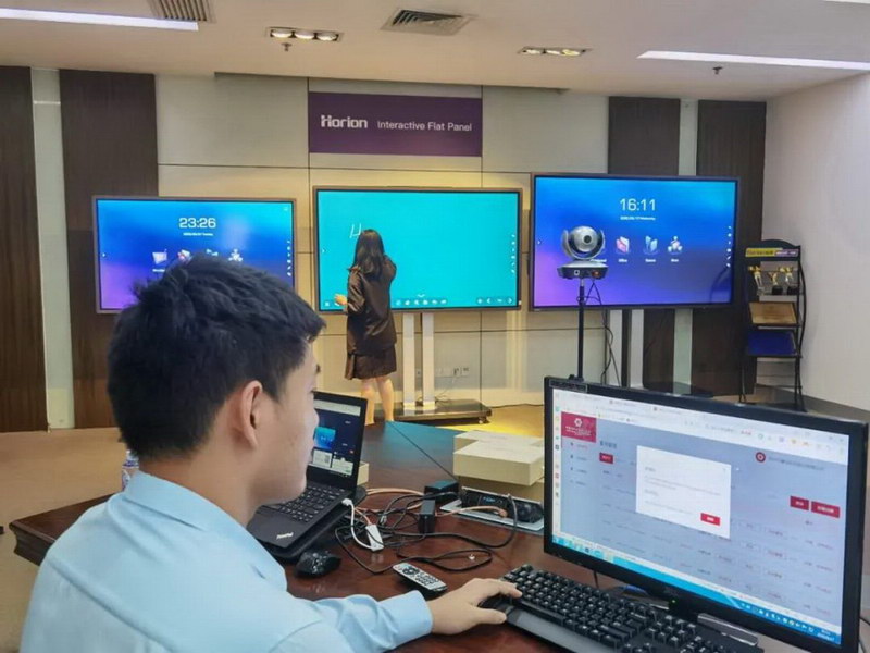 從白板書寫的圖片插入的細節,到視頻會議場景麥克風的使用,皓麗直播間將產品實際功能和使用場景結合,通過主播在線演繹,讓客戶更好的體驗皓麗會議平板的簡單交互與豐富功能。