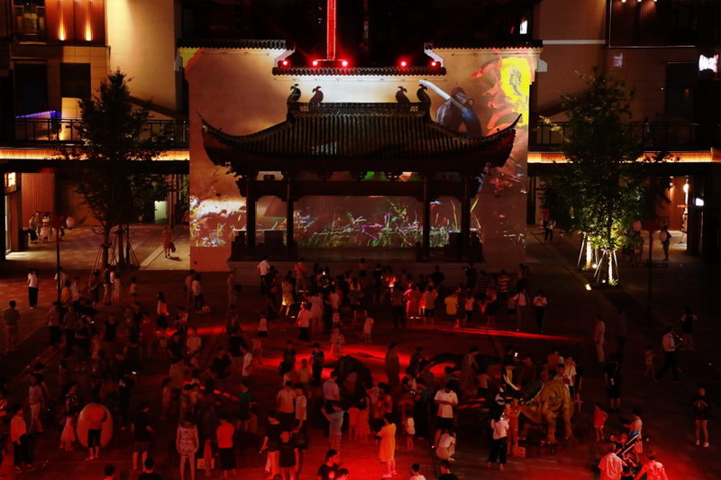 在文化街地下商業部分,美輪美奐的天幕成為一大亮點。21臺NEC PX1004UL+激光工程投影機,采用豎投、融合的投影技術營造出230米超長天幕,帶給市民和游客無限驚喜和遐想。來到地上的戲臺廣場,運用5臺PX803UL+激光工程投影機打造的古戲臺光影秀映入眼簾,在古老戲臺上唱一出科技大戲,凸顯出歷史文化古街的主體特色。