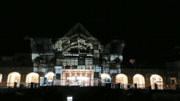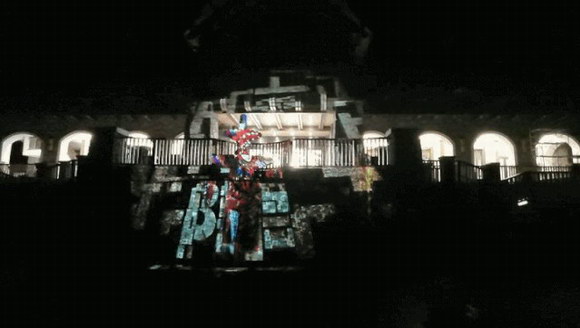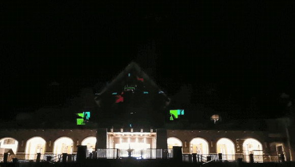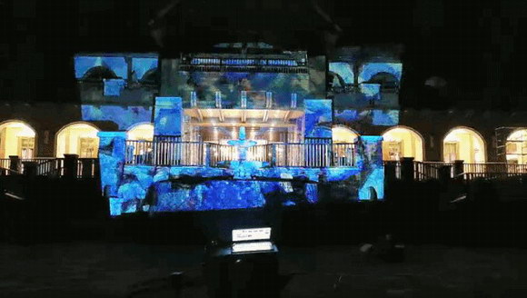 這場光影秀由安恒集團(tuán)提供解決方案,利用兩臺(tái)16,000流明的松下液晶激光工程投影機(jī)PT-SMZ16KCL采用豎向融合的方式進(jìn)行投影,總投影面積約233平方米,屏前照度高達(dá)113lux。