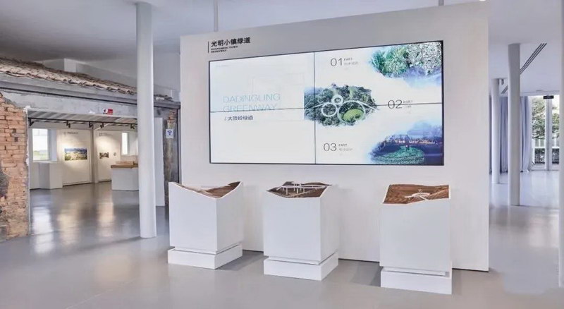 光明小鎮體驗中心是結合現代都市圈與田園風光特色由舊民居改建而成,刻意保留部分原有的外觀,立于綠水青山間。推開門,抬頭卻是明凈的現代藝術空間,這個被錯當成現代美術館的展示館,是藝博堂為華僑城集團打造的光明小鎮體驗中心。原本是老舊建筑物的體驗中心,如今已成為光明小鎮與市民“對話”的窗口,通過藝術展覽、主題文化活動等,讓體驗中心真正成為了光明小鎮文化發聲的源點。